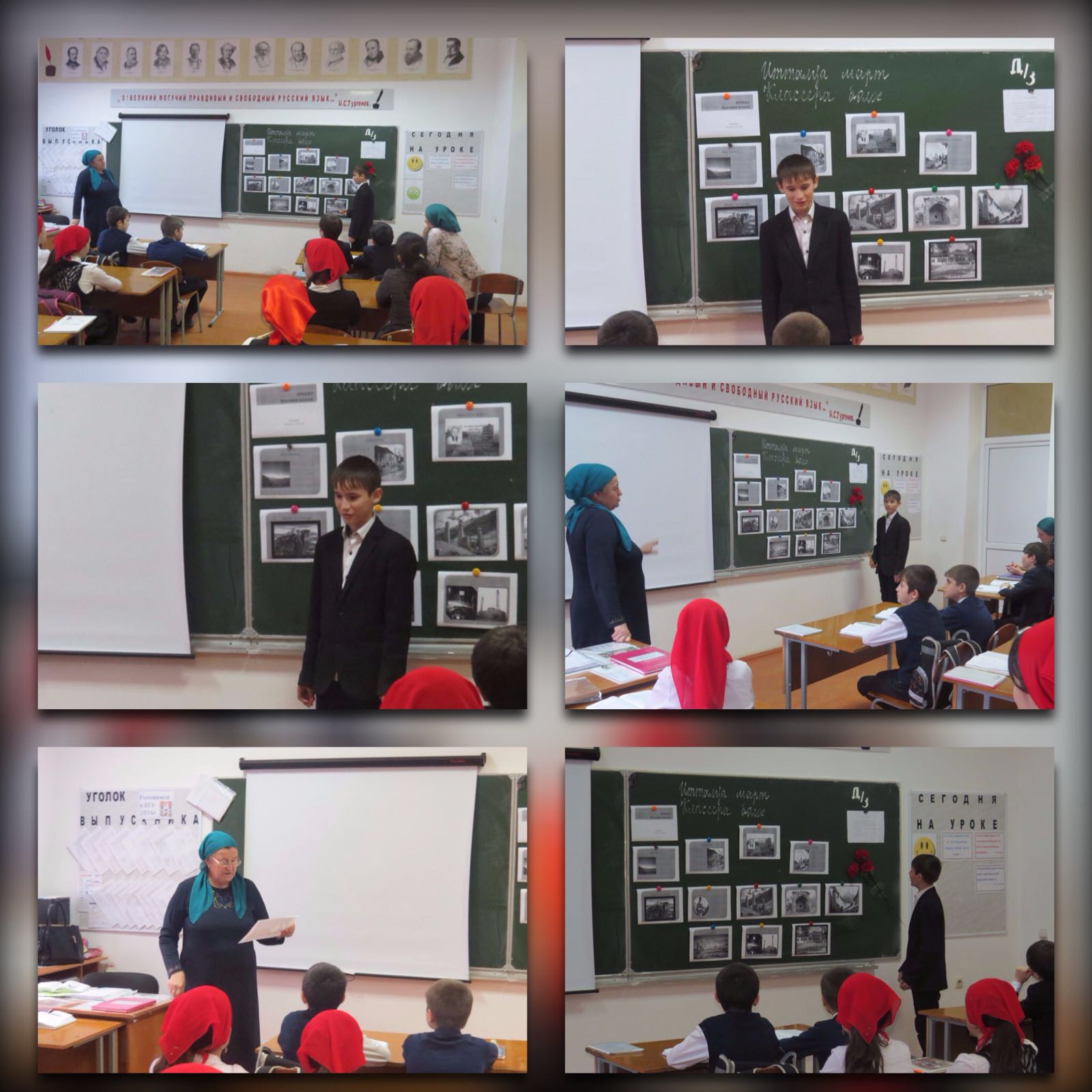 Открытый урок по чеченской литературе в 6 "Б" классе проводит Шабаева Н.Г. Ученик Рутигов Асхаб защищает свой проект "Нохчийн махках" над которым он работал с начала учебного года.