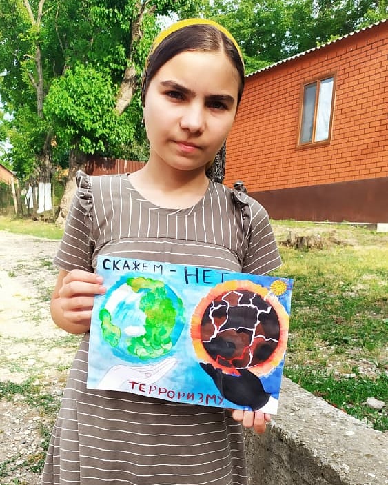 Акция " Вместе против терроризма." Рисунок ученицы 8"А" класса Асаевой Танзилы.