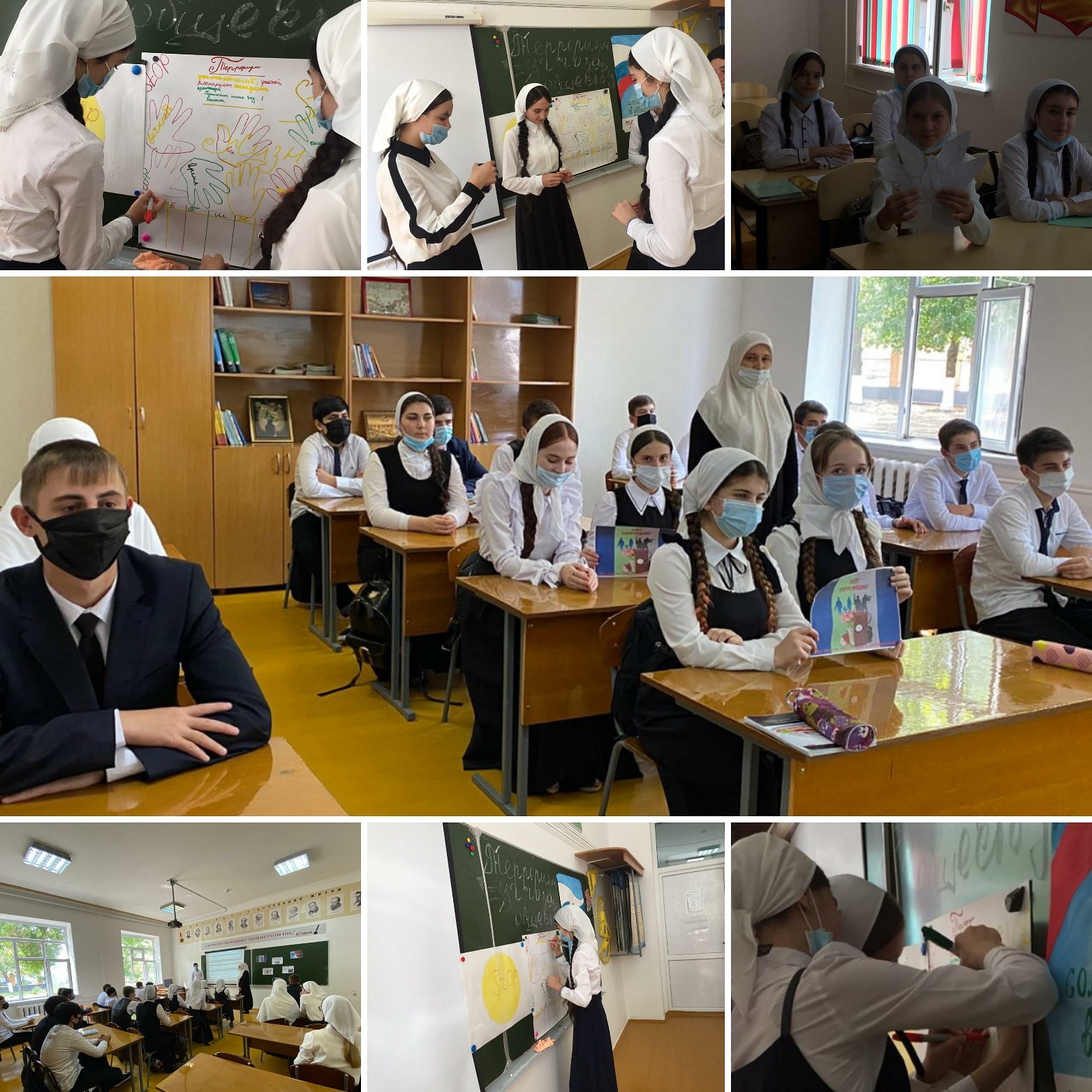 Педагоги подготовили рассказ о хронике событий в Беслане, подчеркнув то горе и страдание, которое перенесли дети, родители, и учителя. В ходе беседы были раскрыты понятия таких слов как: «терроризм», «теракт» и причины, порождающие желание совершать террористические акты.
