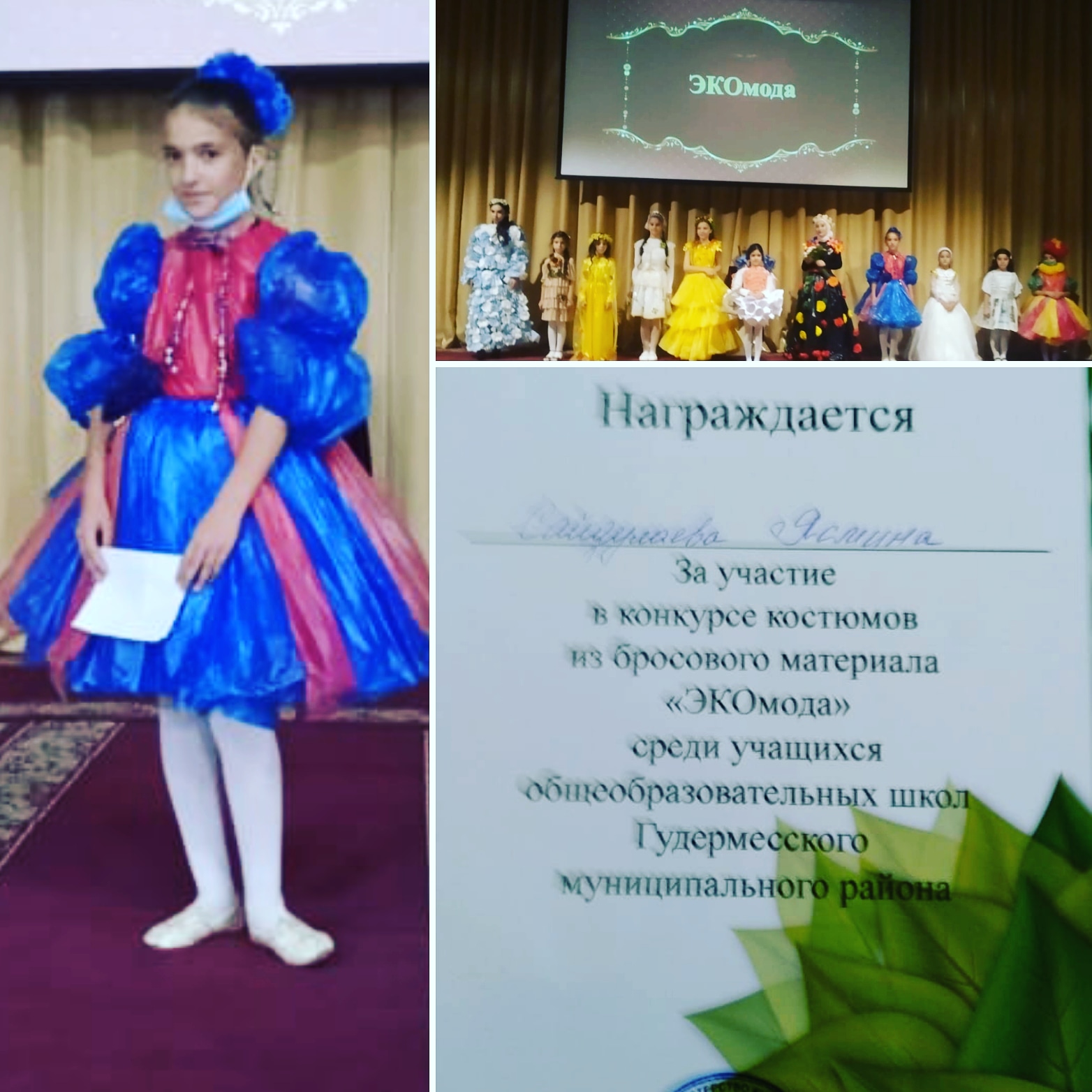 Ученица 5а класса Сайдулаева Ясмина приняла участие в районном конкурсе "ЭКОмода".