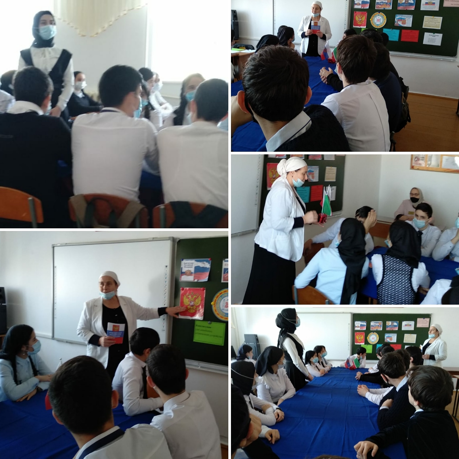 Круглый стол в 9а классе: "Конституция РФ. Место и роль основного закона в общественно - политическом развитии развитии республики на современном этапе" , провела учитель обществознания Вагапова А.И. На мероприятии присутствовала заместитель директора по ВР Занаева М.У.