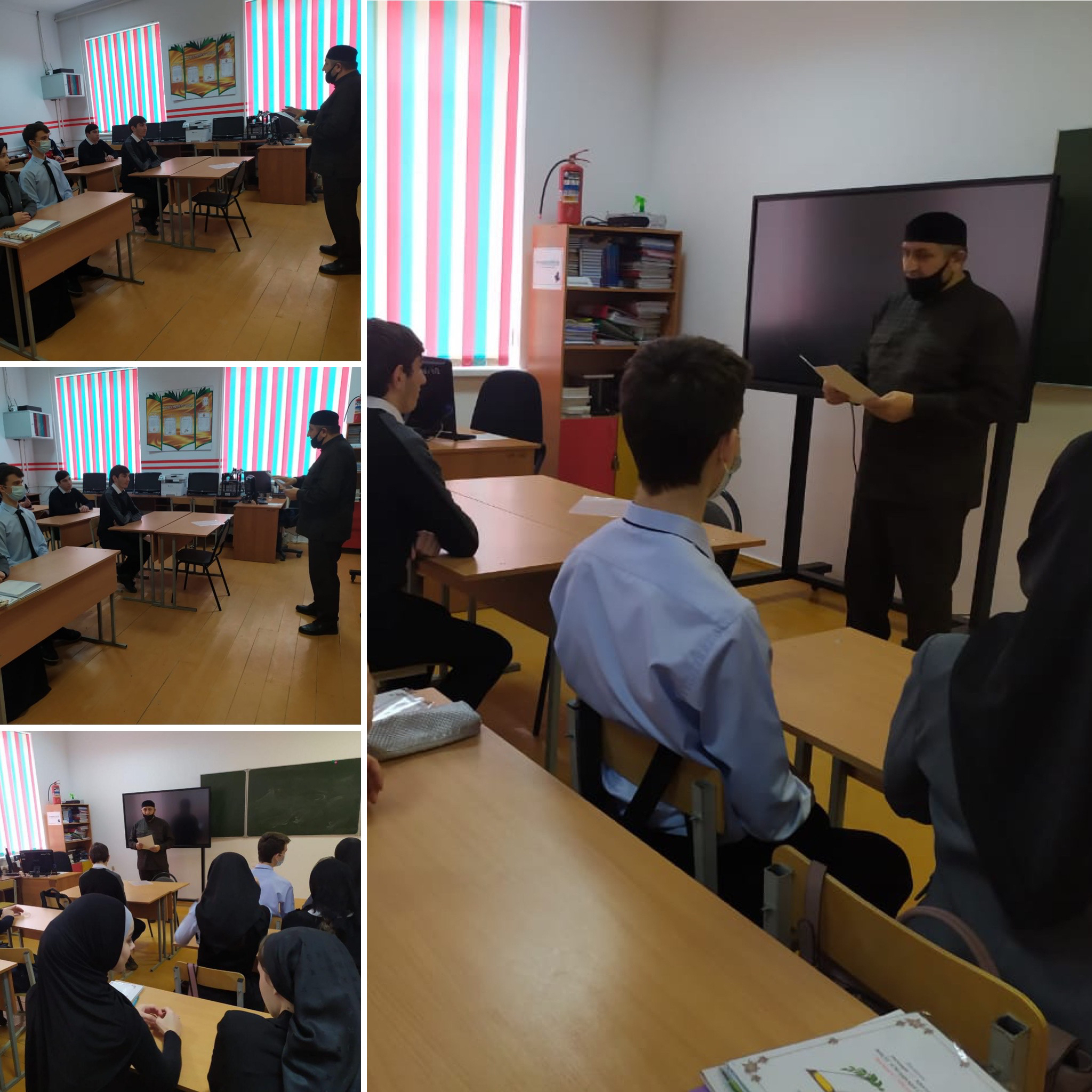 Активисты ЧРОО ЕДЮО "Юные Кадыровцы" Гудермесского района организовали беседу с духовником школы в 11 классе на тему "Правила поведения мусульман: доброта и мягкость".