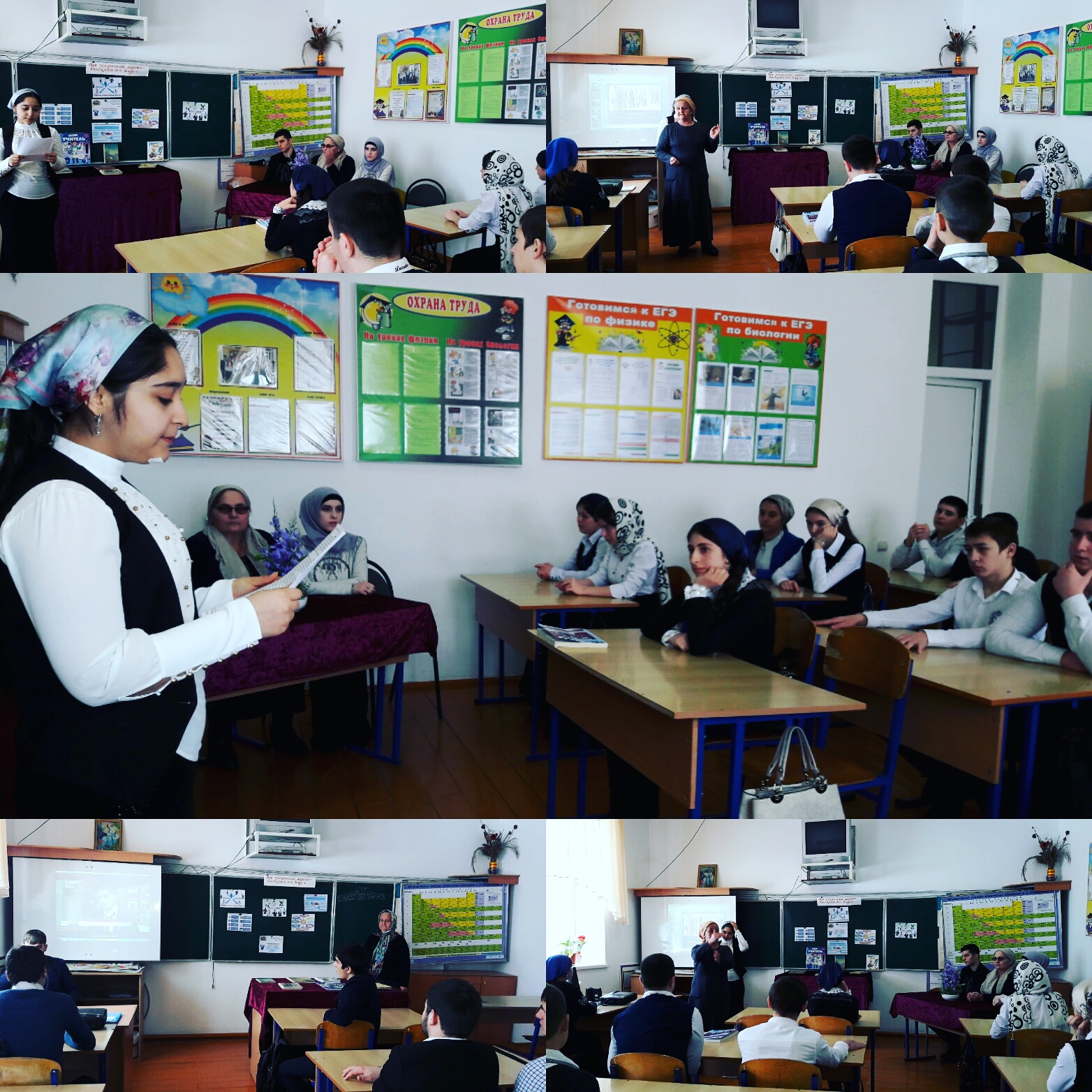 28.01.2017Мероприятие по профориентации. Встреча учащихся 9"А" класса выпускниками школы: Дакаевым В.Д.(выпускник ЧГУ), Атабаевой Ж.М.( студентка ЧГПУ), Хазбулатовым А.У. ( студент Института финансов и право г.Махачкала). Организовала библиотекарь Эльтукаева К.Х.Нравится