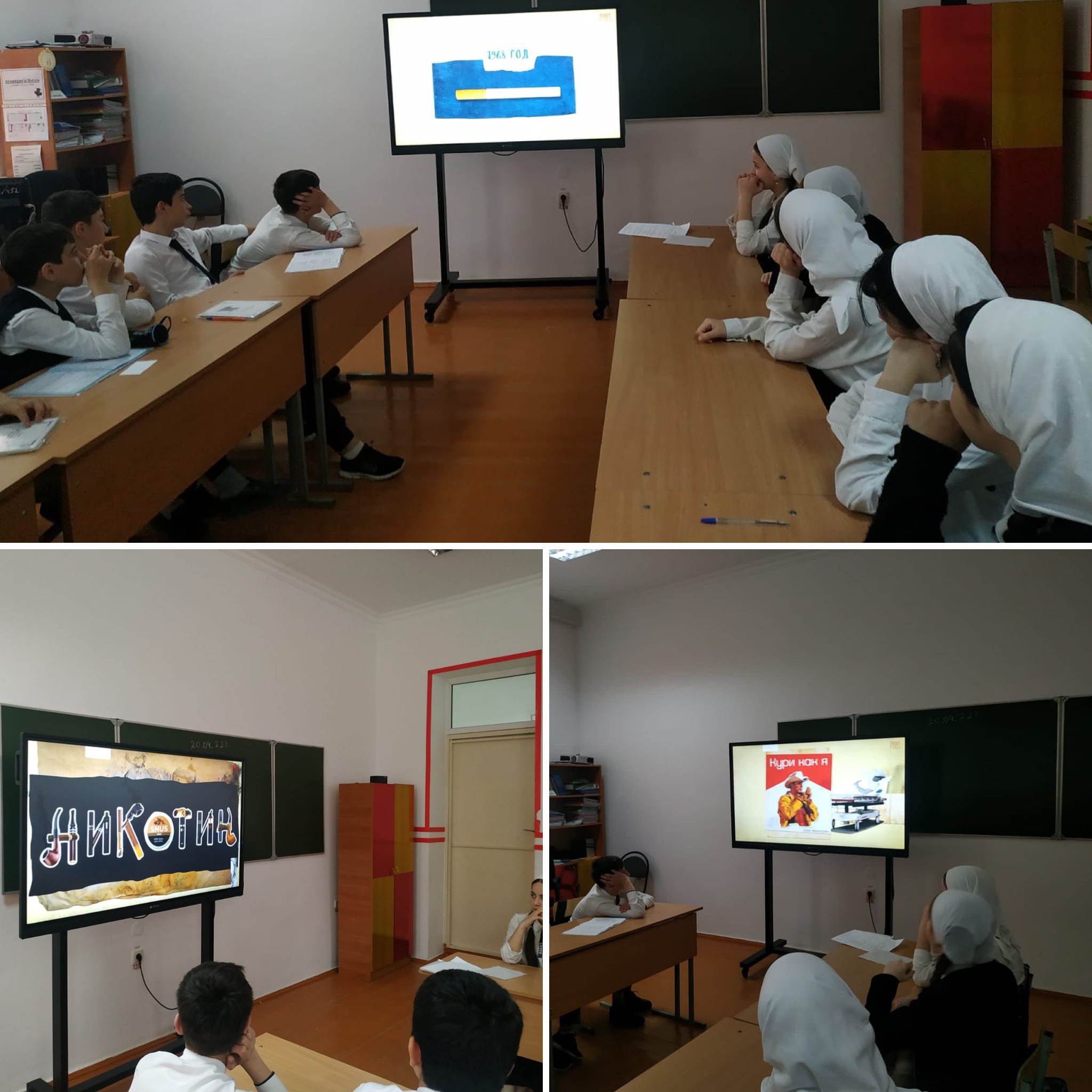 Просмотр и обсуждение в 7классе документального фильма "История табака и его последствия". Внеклассное мероприятие провел классный руководитель Шатаев М.
