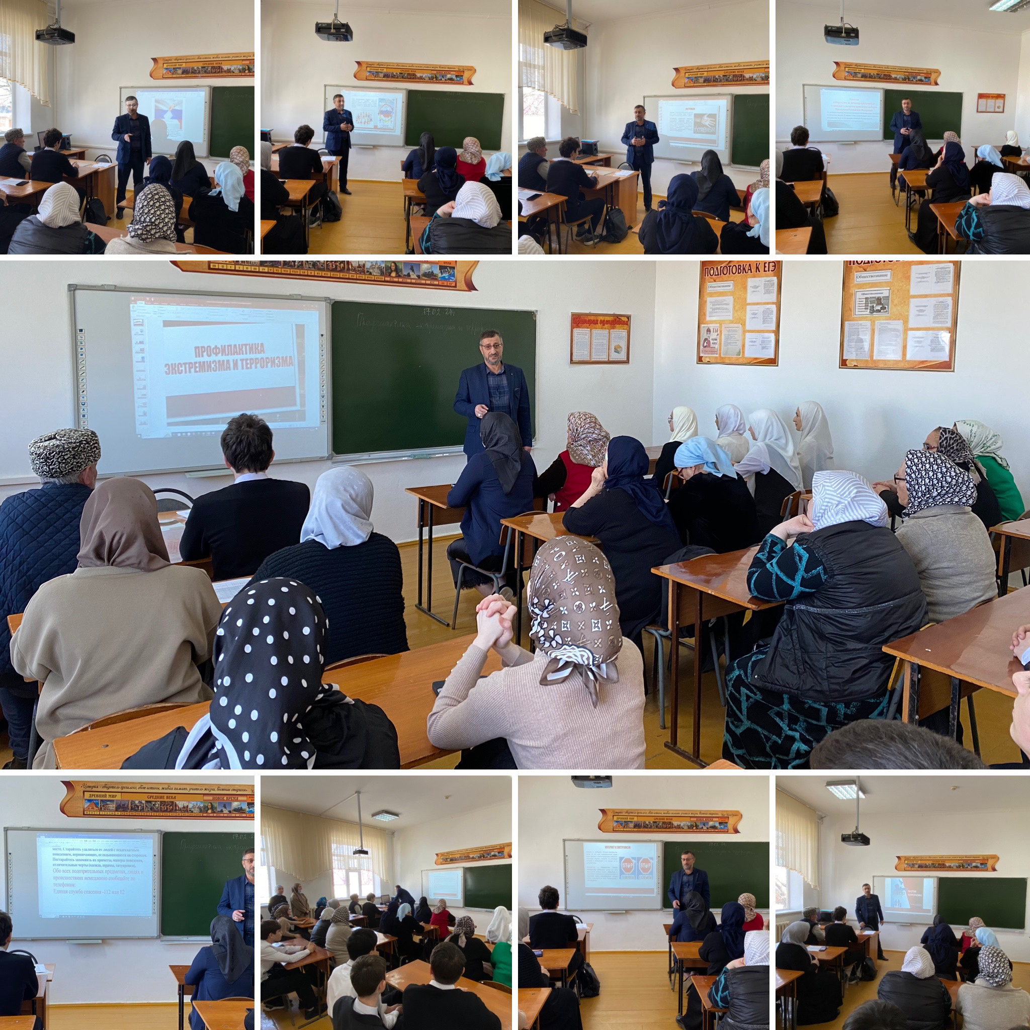 27 февраля 2024 года в МБОУ «Ойсхарская СШ №3» совместно с сотрудниками ФСБ России по Гудермесскому району проведены мероприятия посвящённые выборам президента России с работниками и учащимися старших классов, провели мероприятие «Профилактика экстремизма и терроризма».