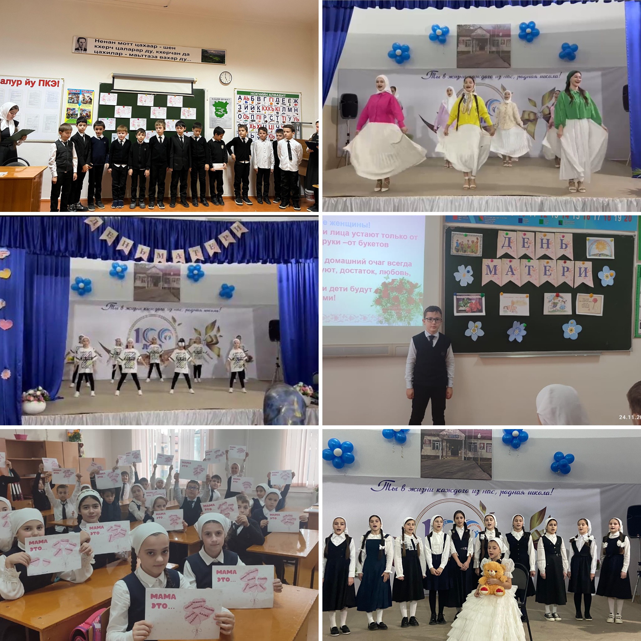 Все мероприятия, приуроченные к празднику "День Матери" направлены на улучшение микроклимата в семьях наших школьников, воспитание уважения и заботы, оказание бережного отношения, желания помочь и делать приятное маме, самому дорогому человеку на земле; вовлечение родителей в воспитательные мероприятия школы. «Любимой маме» – так мы назвали концертную программу посвящённую дню матери. В красиво наряженный зал были приглашены мамы наших обучающихся. С тёплыми словами к женщинам обратилась ведущая праздника Вокуева П.Х. Под нежные звуки музыки ребята прочли стихотворения: «С праздником, мамочка моя!», «Мамулечка…Мама- короткое слово.». Много душевных песен прозвучало в адрес мам. 8а класс подготовил юмористическую сценку. Задорно пели песню «Матушка» учащиеся 9-х классов. Участие принимали все классы. Не остались в стороне наши самые маленькие артисты, это учащиеся начальной школы. Они подготовили стихи, танцы и частушки. Все старались порадовать мам от души. И это им удалось.
