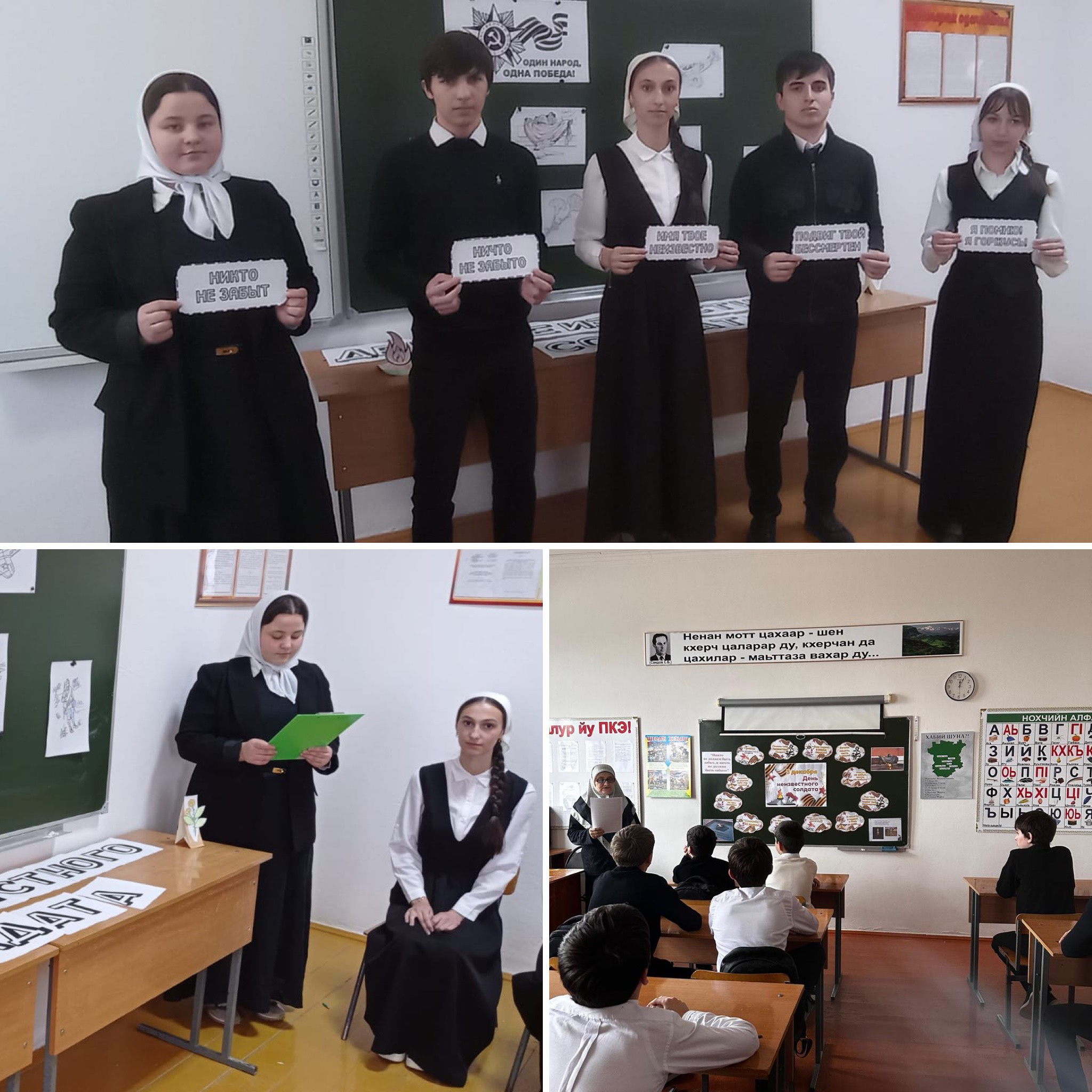 В преддверии Дня Неизвестного Солдата, в МБОУ «Ойсхарская СШ №3» на мероприятии ребята познакомились с историей возникновения этой памятной даты, узнали, почему именно 3 декабря было выбрано для сохранения памяти воинской доблести, классные руководители рассказали школьникам о мемориале «Могила Неизвестного Солдата». Школьники познакомились с книгами о великих сражениях, стихами и прозой военных лет, иллюстрациями памятников Неизвестному солдату, расположенных в различных городах нашей страны.