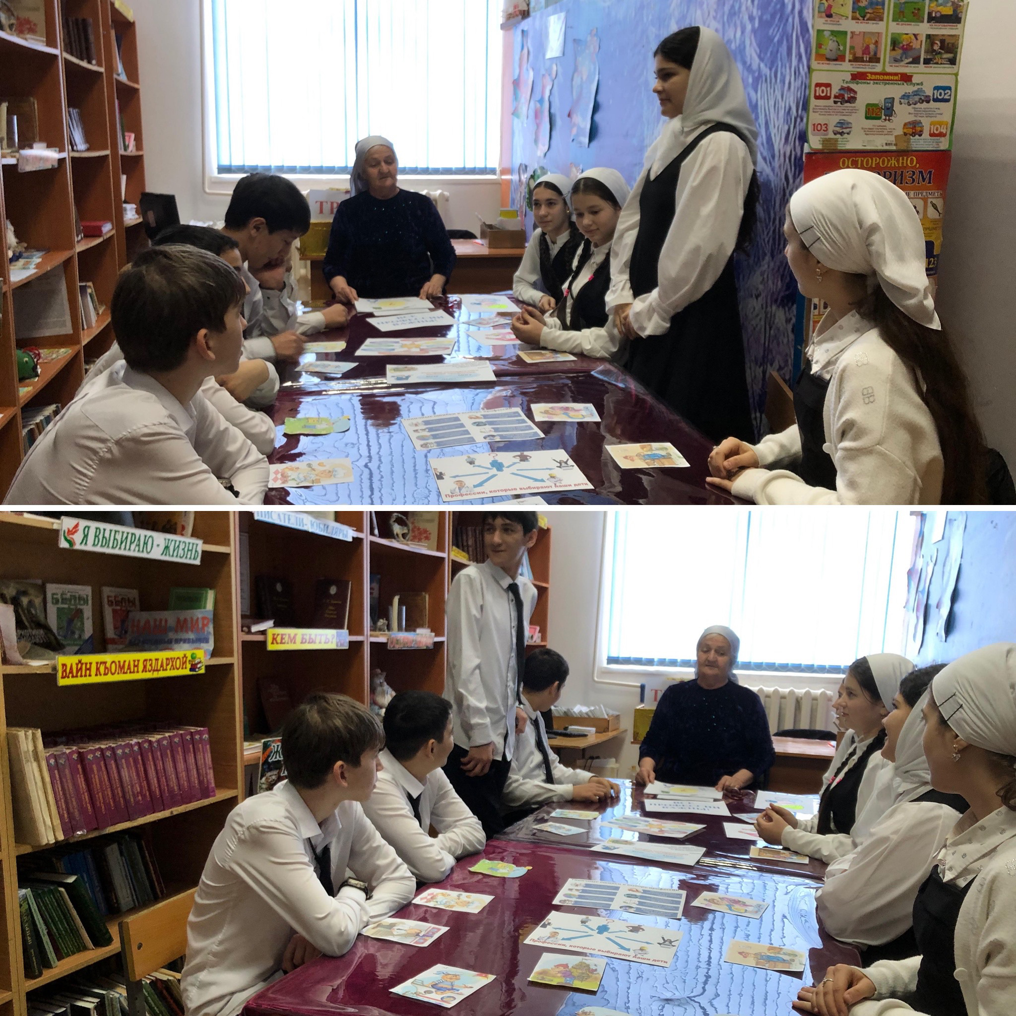 В школьной библиотеке Эльтукаева К.Х. провела беседу по профориентации “Мир профессий”. Библиотекарь рассказала учащимся 7б класса о многообразии профессий и их важности для людей. Ребята, вместе с библиотекарем обобщили, какие профессии нравятся детям, учащиеся выявили факторы которые влияют на выбор профессии. В ходе мероприятия ребята узнали о новых и модных профессиях, вспомнили пословицы и поговорки о труде, рассказали о профессиях своих родителей.