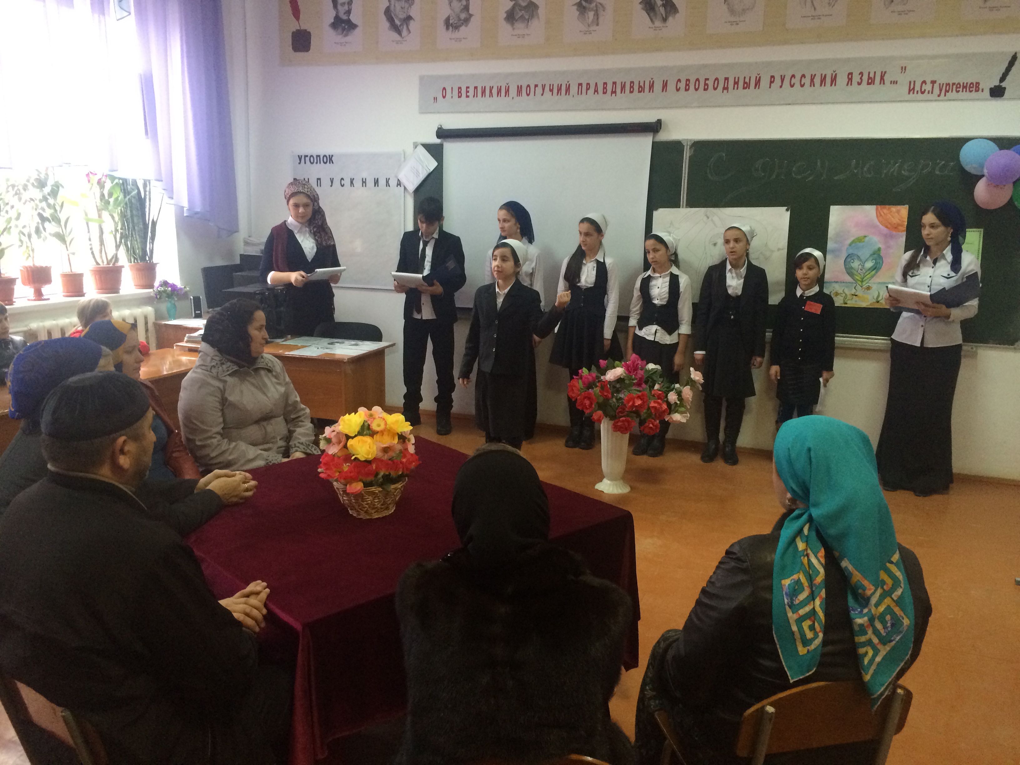 было проведено в МБОУ "СОШ№3 Ойсхарского сельского поселения". Учащиеся поздравляли приглашенных гостей и всех матерей. Выразили благодарность матерям за их заботу и безграничную любовь.
