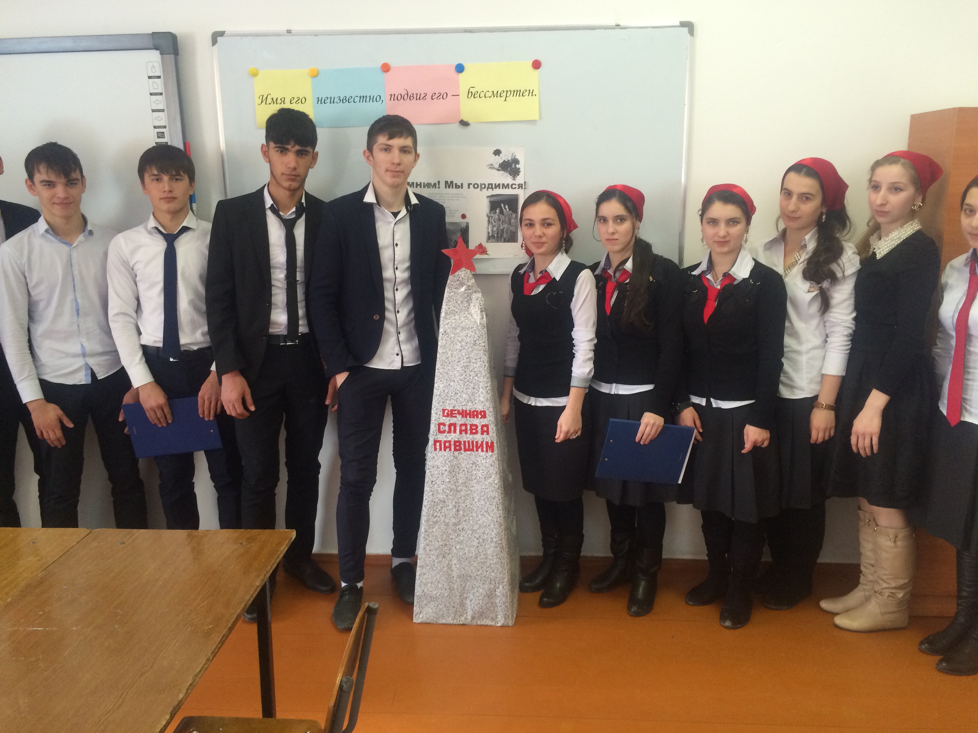 На этих мероприятиях руководители классов говорили с детьми о великой победе, о героических подвигах советских солдат,о подвиге ,который совершил неизвестный солдат защищая столицу Москву от немецких оккупантов в 1941году.Интересно прошел в 11 классе устный журнал: «Имя его неизвестно – подвиг его бессмертен», который провела организатор школы Хажалиева М.Т. Основная цель этих мероприятий — воспитание чувства любви к Родине, уважения к героическому прошлому и настоящему нашей страны, а также популяризация поисковой и исследовательской работы в школе.