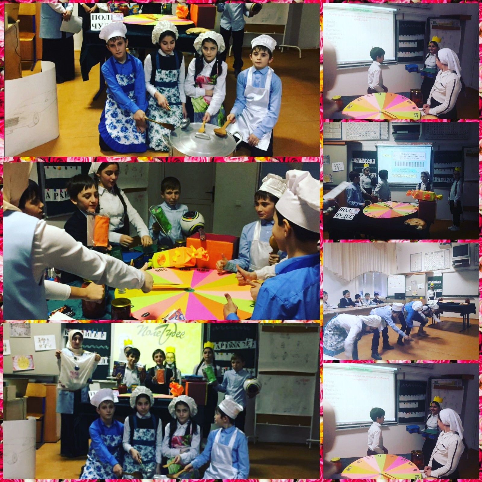Турлаева Ж.А. провела игру "Поле чудес" с учащимися 5 классов. Тема игры "Профессия вокруг нас". В игре участвовали тройки игроков . Победителем первой тройки стал Бестулагов С. Победителем второй тройки Гусиханов С. Победителем третей тройки стала Усманова Т. В финале победила Усманова Т. В игре с зрителями победил Таштамиров М. Всем ребятам были вручены подарки. На игру ребята принесли поделки, сделанные своими руками, рисунки. Некоторые ребята приготовили творческие номера. Все участники и зрители получили большое удовольствие от проведенной игры " Поле чудес".